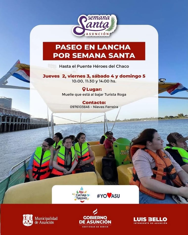Una de ellas es el paseo en lancha por el río Paraguay, organizado por la Municipalidad de Asunción, a través de su Dirección de Cultura y Turismo.
